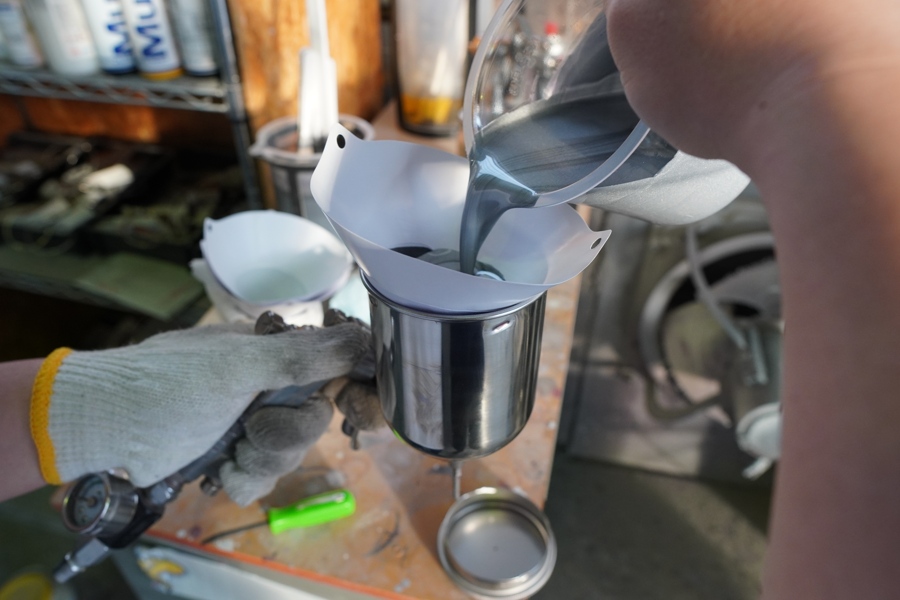 塗装前には、サフェーサーと呼ばれる下地剤を塗布します。このサフェーサーには黒・白・グレーの種類があり、どれを選ぶかによって上塗りの発色が大きく変わってきます。