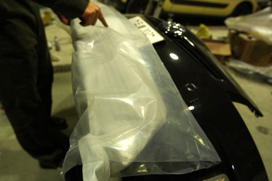 前期型特有の浅いグリル開口部や、ナンバーまわりの構造を活かしながら、後期型のようなシャープな印象に仕上げることがテーマでした。